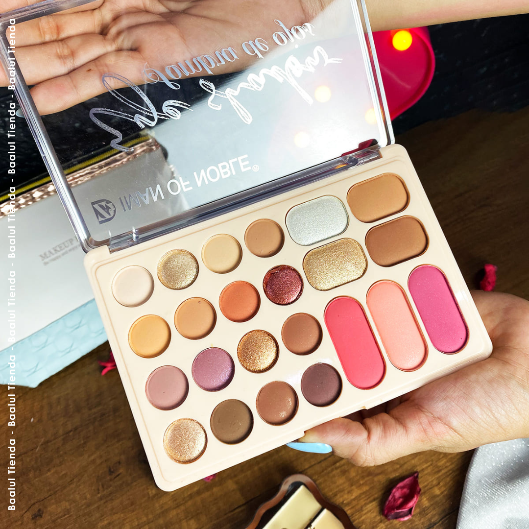 • 🎨 Paleta de sombras con tonos vibrantes y neutros, ideal para cualquier ocasión